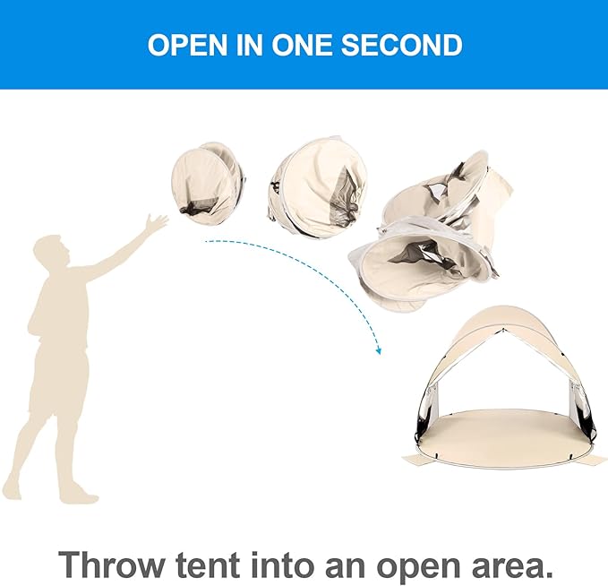 • UPF 50+ & Water Repellent: The water repellent polyester with taped seams keeps the inner shelter dry, and the silver coated tent surface reflects and absorbs sunlight to block up to 98% of the suns harmful ultraviolet rays which protect user from ultraviolet rays.