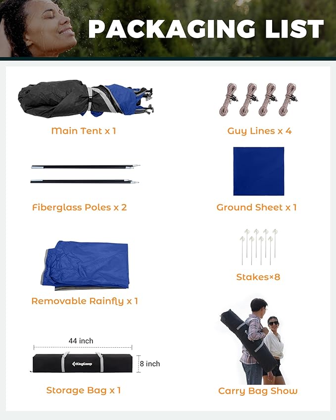 • QUICK SETUP & STORAGE: No tools required! Simply unfold the tent, extend the poles, and listen for the "click" sound to complete the setup. The entire process takes just 60 seconds, offering a hassle-free and quick shower tent experience. Comes with a storage bag for easy transport, with packed dimensions of 44" x 8" x 8".