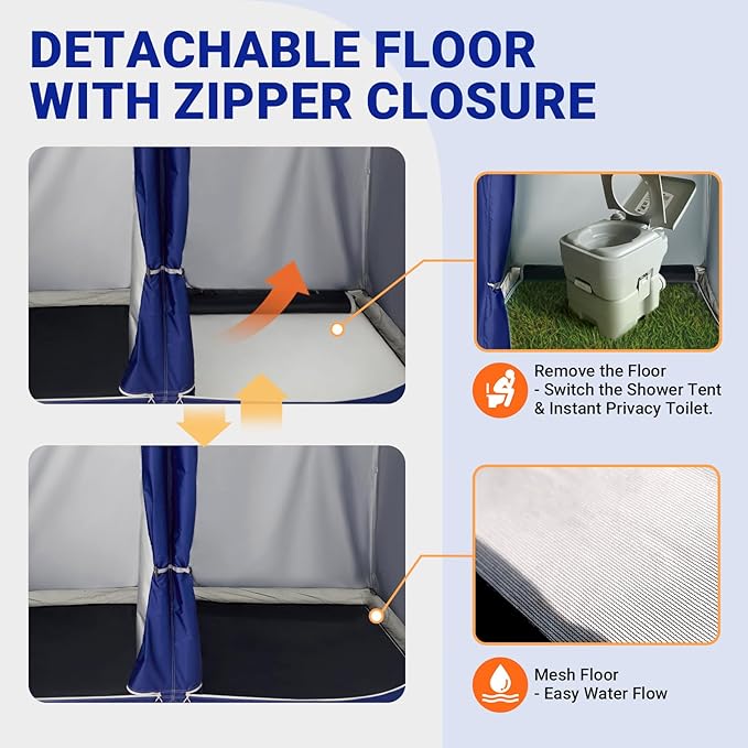 • EXCELLENT VENTILATION: Designed with large mesh windows for enhanced airflow, keeping the instant portable shower tent well-ventilated. The PE floor has zippers for easy drainage and mosquito protection. The floor can be opened to place a portable toilet, maintaining a clean and hygienic environment.