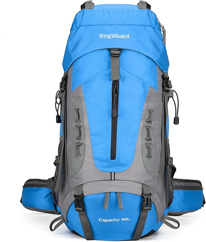 King'sGuard 60L Hiking Backpack Lightweight Camping Backpack with Rain Cover Large Waterproof Packable Outdoor Trekking Travel Backpack for Men Women (Blue)