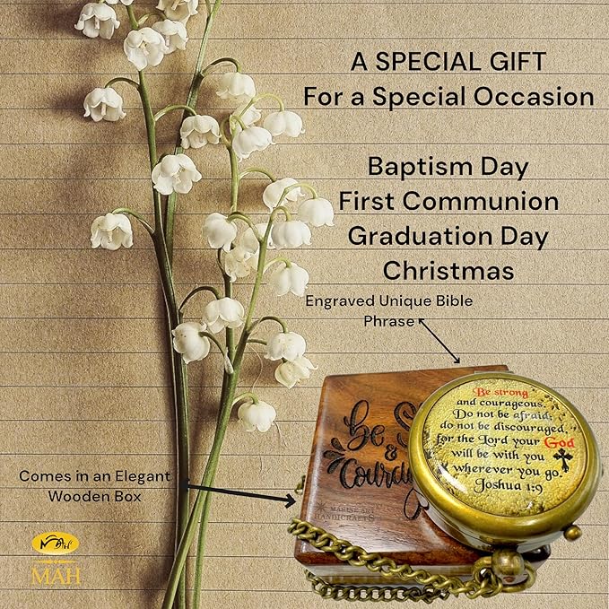 • Elegant Gift Packaging – Each “Be Strong and Courageous” compass is presented in either a premium leather case or a handcrafted wooden box, making it a meaningful devotional gift for any spiritual occasion