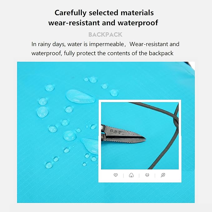 • MULTI-PURPOSE BACKPACK:This hiking backpack for both women and men, great for trevel,beach, water sports.Outdoor activities,camping, hiking ,cycling,mountaineering climbing, snow skiing...Daily gym, swimming, sports-bag, office gift choice.This easy to carry on backpack, fabric like skin, foldable bag can be folded into the backpack, lightweight and no space,be easy to use.