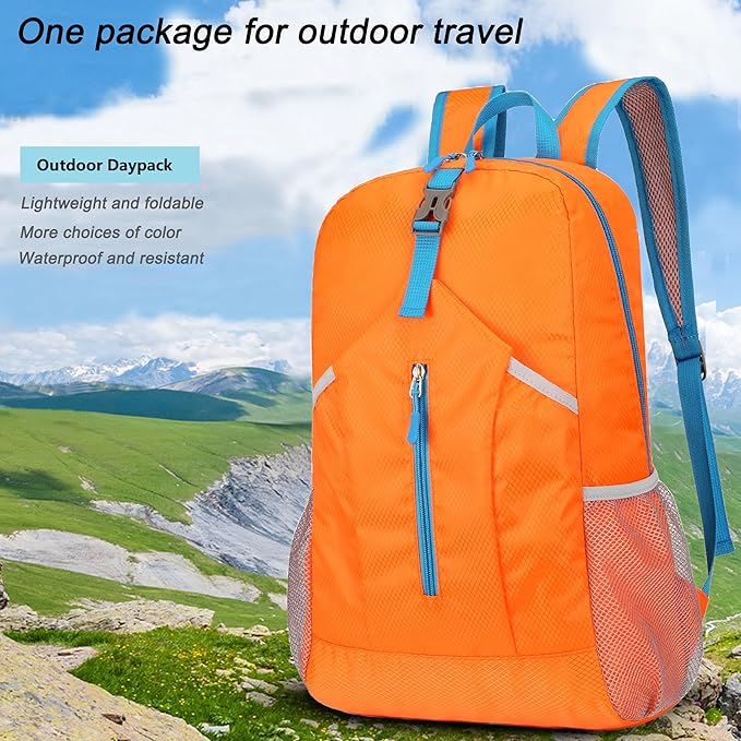 • MULTI-PURPOSE BACKPACK: This foldable backpack is versatile, suitable for various outdoor activities such as travel, camping, hiking, day trips, and even shopping. It offers ample storage space with its main zipper pocket, front zipper pocket, and two mesh side pockets. Ideal for international travel as well.