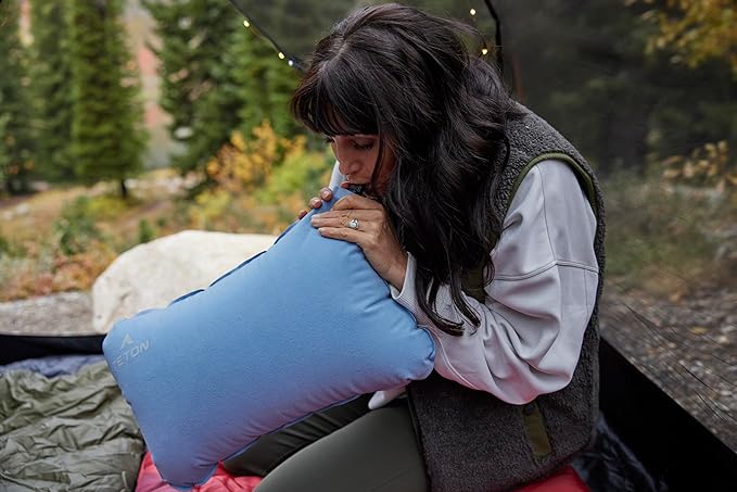 • Calling all campers, commuters, and globe-trotting adventurers. Travel like a boss with the Skyline Self-Inflating Pillow from TETON Sports.
