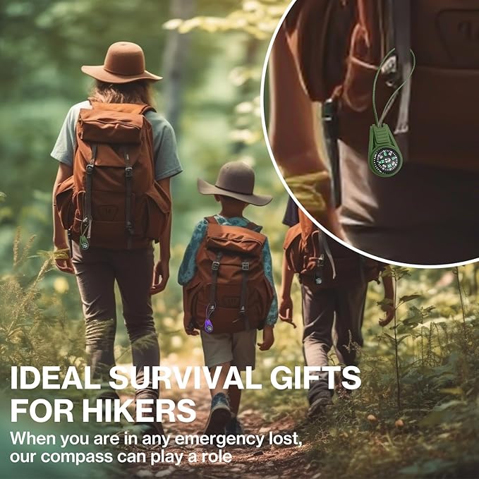 • Wild Necessities: The multi-colored survival compass can be easily attached to a backpack, key chain, or even used as a zip pull. Whether you're engaged in outdoor survival, camping, hiking, or any other outdoor activity, our multicolor Your Survival Compass is an essential tool to help you navigate and find your way