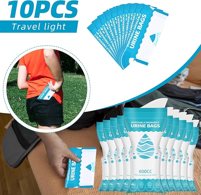 10 Pack Disposable Urine Bags, 800ML Pee Bags for Travel for Men Women, Disposable Urinal Bags and Unisex Urinal Bag, Vomit Bags, Pee Bag for Traffic Jams, Camping, Pregnant, Patient