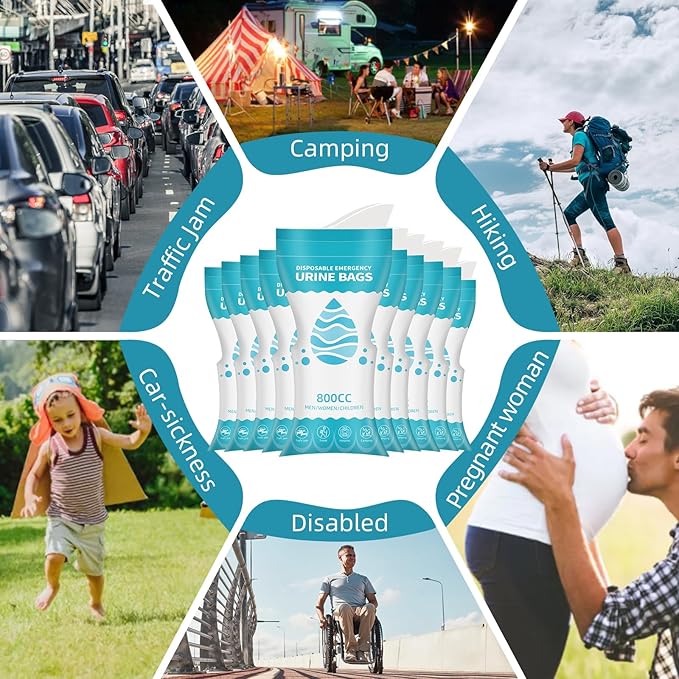 • 【Wild application】Our disposable urinal bags are convenient for pregnant women ,patients , disabled people , adults, kids, male, female, women, men , who relieve emergency urination during camping, traffic jams or travel, emergency situations, or anywhere away from toilet.