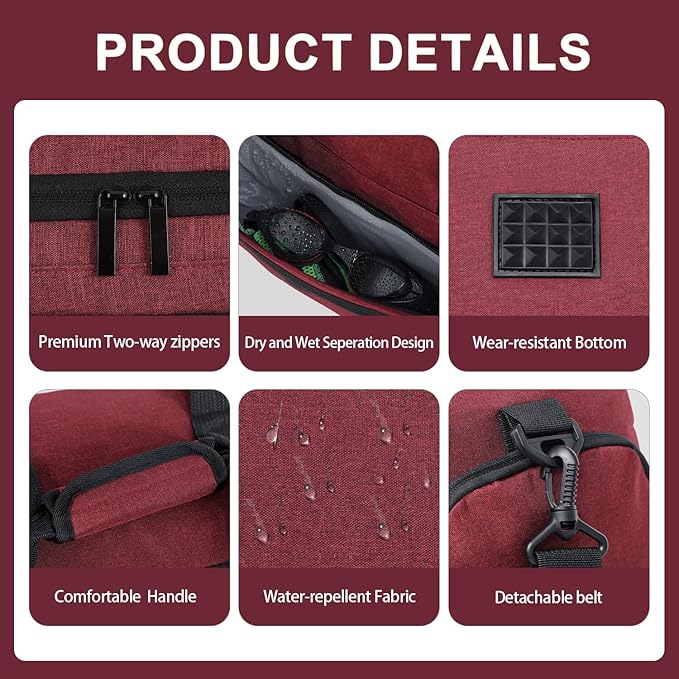 • ๐–๐ž๐ญ ๐๐จ๐œ๐ค๐ž๐ญ & ๐’๐ก๐จ๐ž ๐‚๐จ๐ฆ๐ฉ๐š๐ซ๐ญ๐ฆ๐ž๐ง๐ญ: The wet pocket is perfect for storing sweaty clothes or towels after your workout; The shoe compartment allows you to easily store and access your gym shoes without dirtying the main compartment