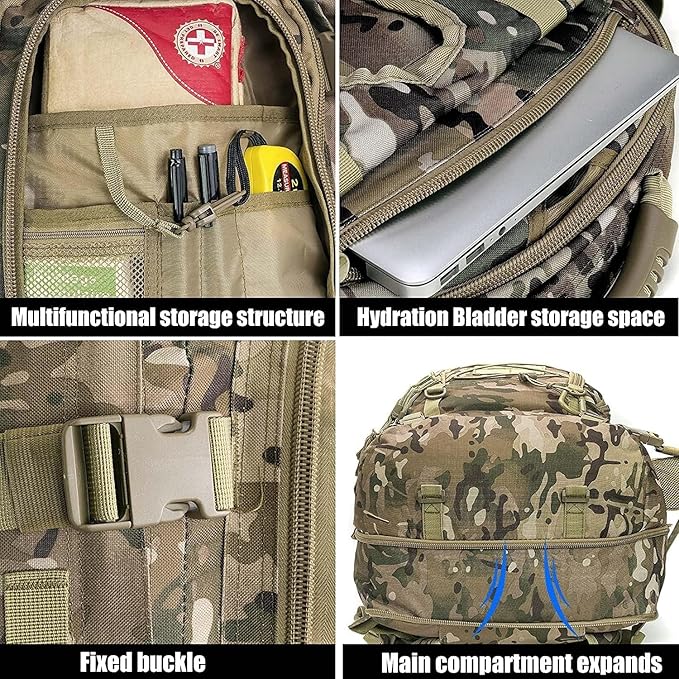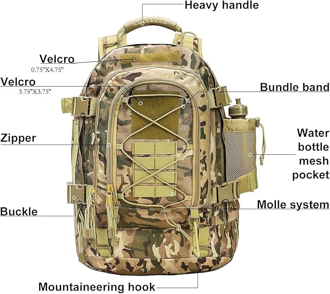 • ✅ Appeal: You can use this amazing backpack every day for travel or a military tactical assault rucksack. It is completely versatile for any backpack situation. You will love having so many different places to put all your stuff to keep it all separated. It even has a hydration compartment.
