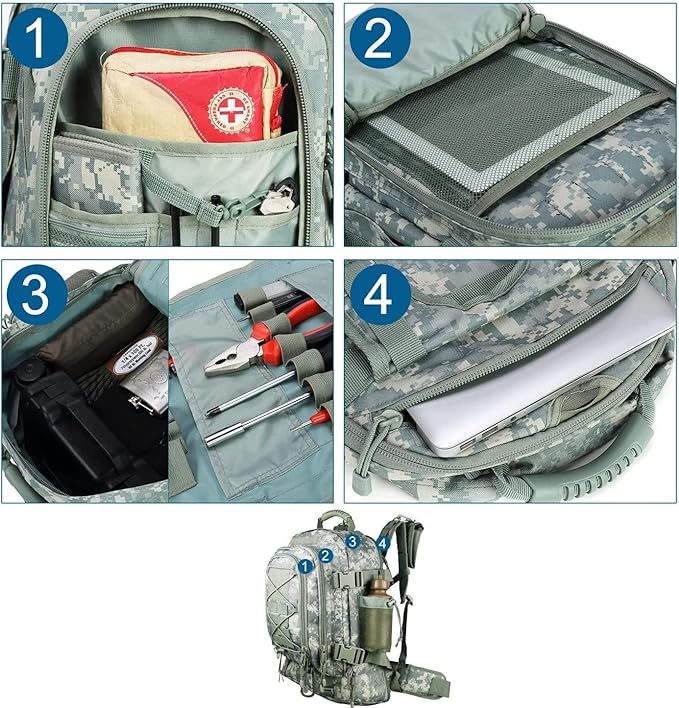 • ✅ Appeal: You can use this amazing backpack every day for travel or a military tactical assault rucksack. It is completely versatile for any backpack situation. You will love having so many different places to put all your stuff to keep it all separated. It even has a hydration compartment.