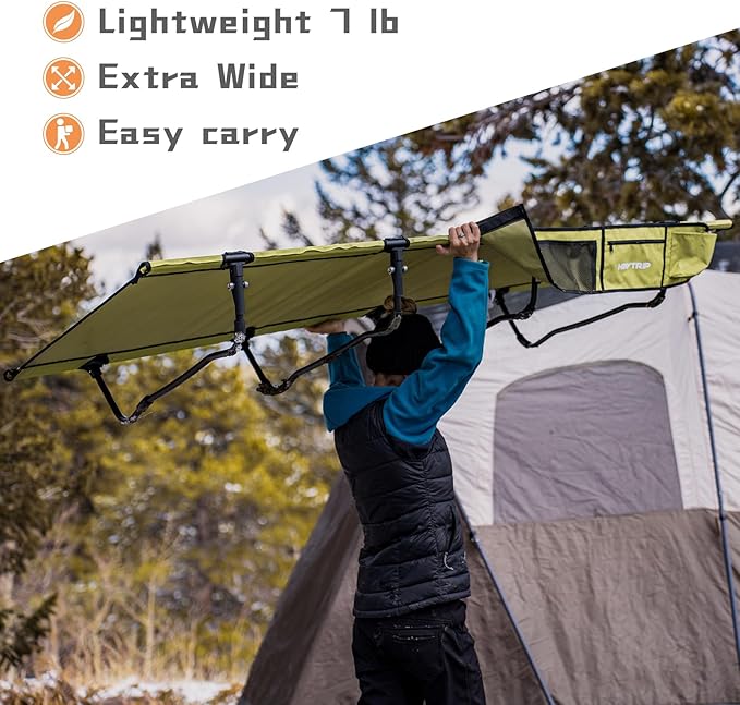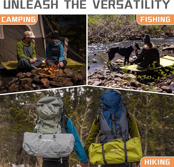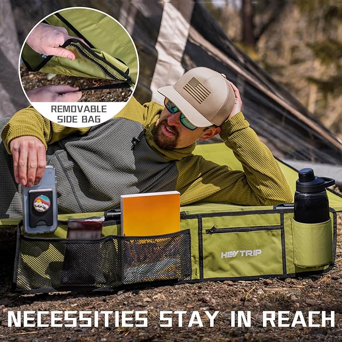 • Heytrip camping cot: Not just for car camping, take it fishing, to the beach, on a hiking and road tripping is a breeze with this backpacking cot. Bring it inside for a quick office nap or as a guest bed for family gatherings. With enough space for adults, kids or pets. Upgrade to Heytrip and experience the ultimate in versatility.