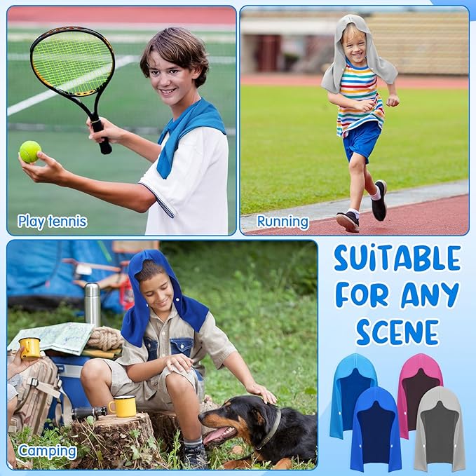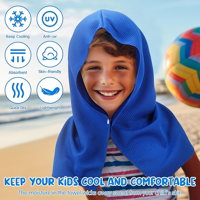 • Hooded Integrated Design: each absorbent polyester cooling neck towel is designed with a convenient hood that keeps it in place and provides more coverage, even during active play; Additionally, it features a button on the neck for secure and easy wearing, allowing your children to fully engage in their activities without the towel slipping off