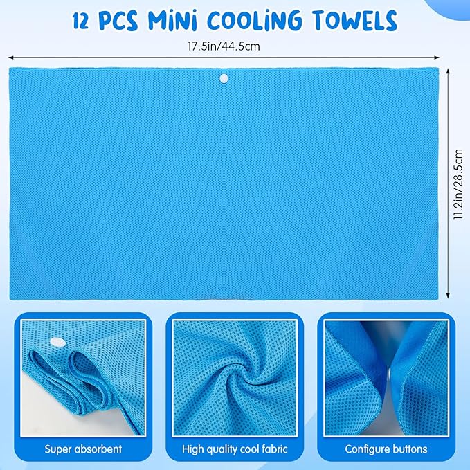 • 12 Units for Kids: each package comes with 12 kid cooling towels for neck and face, ensuring your child always has a fresh towel on hand, suitable for children in fishing, cycling, running, jogging, sports, barbecues, vacations, physical education and other children's gatherings where cooling off is needed, also fit for hot flashes, fever, heat prevention, sun protection, absorption cooling