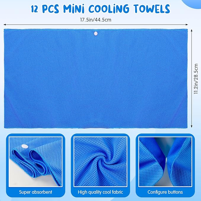 • 12 Units for Kids: each package comes with 12 kid cooling towels for neck and face, ensuring your child always has a fresh towel on hand, suitable for children in fishing, cycling, running, jogging, sports, barbecues, vacations, physical education and other children's gatherings where cooling off is needed, also fit for hot flashes, fever, heat prevention, sun protection, absorption cooling