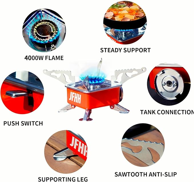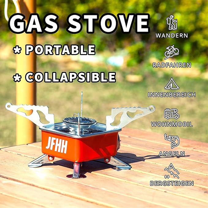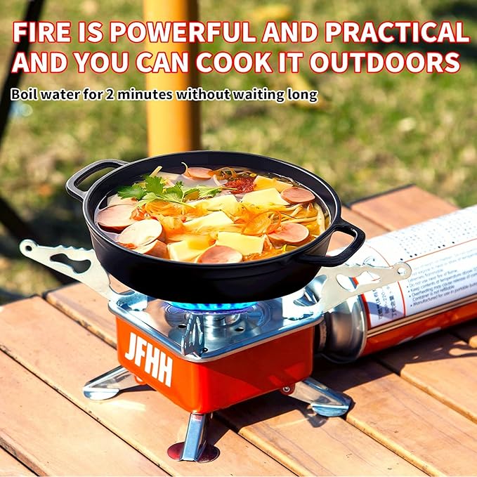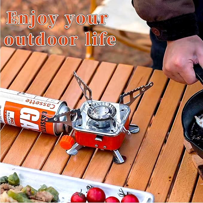 • ☛【Essential Camping Gear】Whether you're hiking, car camping, or pitching a tent, this portable gas stove is an indispensable item in your camping arsenal, offering a convenient and comfortable outdoor cooking experience.