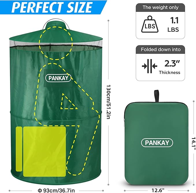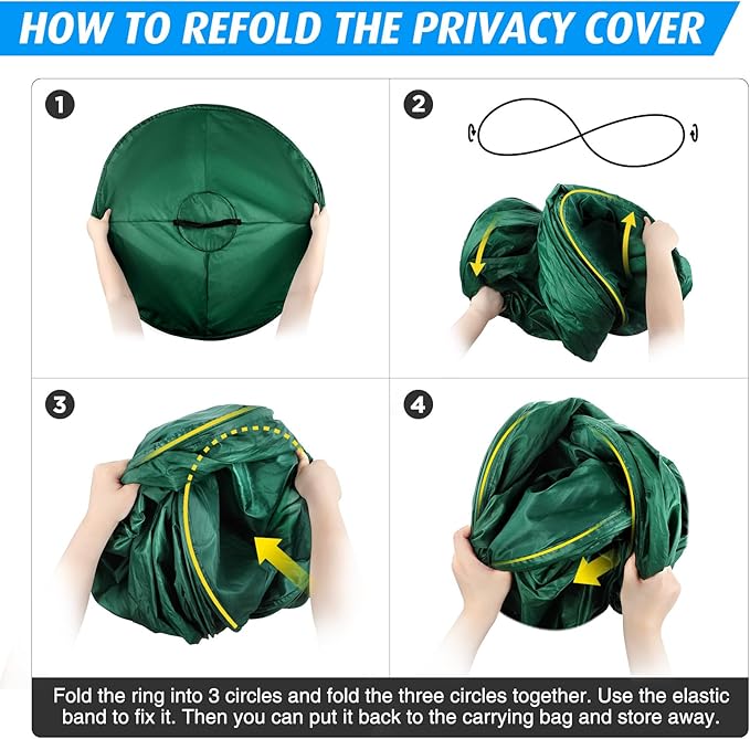 • PRODUCT DETAILS – Material: 190T Polyester. Dimensions: Fold down: (L) 14.1" x (W) 11.8"; Set up: (Diameter) 36.7" x (High) 51.2".