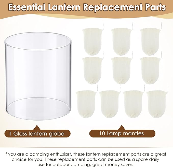 • [Essential Lantern Parts]: if you are a camping enthusiast, these lantern replacement parts are a good choice for you; During the use of kerosene lamps will cause some wear and tear on the lampshade, 10 pieces of kerosene lampshades and a lantern glass replacement can be applied as a spare daily use for outdoor camping