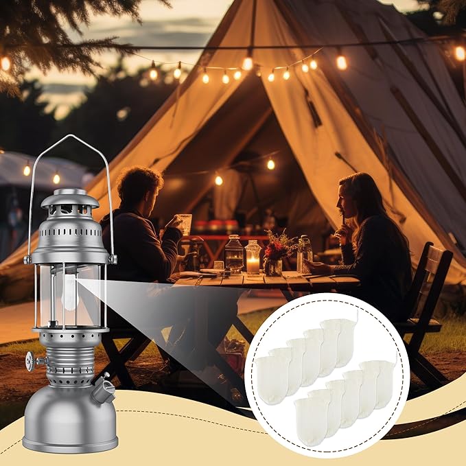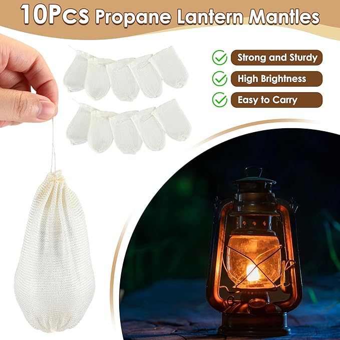 • [Lantern Replacement Parts for Easy Installation]: the package included 10 pieces propane lamp mantles and 1 piece replacement clear glass lantern globe; These lantern mantles are U shaped lantern mantles, each lantern mantle comes with a rope, just removing the lantern and glass cover, placing the opening of the new cover into the wick, pulling the drawstring to tighten the knot, and replacing the glass cover for an easy installation