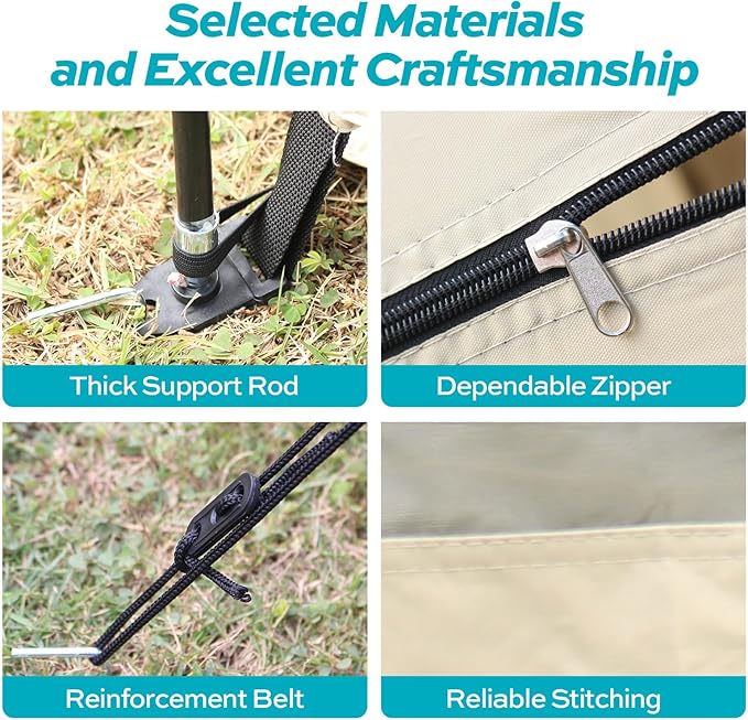 • 【OVERSIZED PRIVACY SHELTER (83"H x 47"W)】Ultra-tall 210D silver-coated Oxford fabric blocks 99% light transmission, creating a secure space for showering/changing. Reinforced PE floor prevents mud/water seepage. Fits most adults up to 6'5" - no crouching needed.