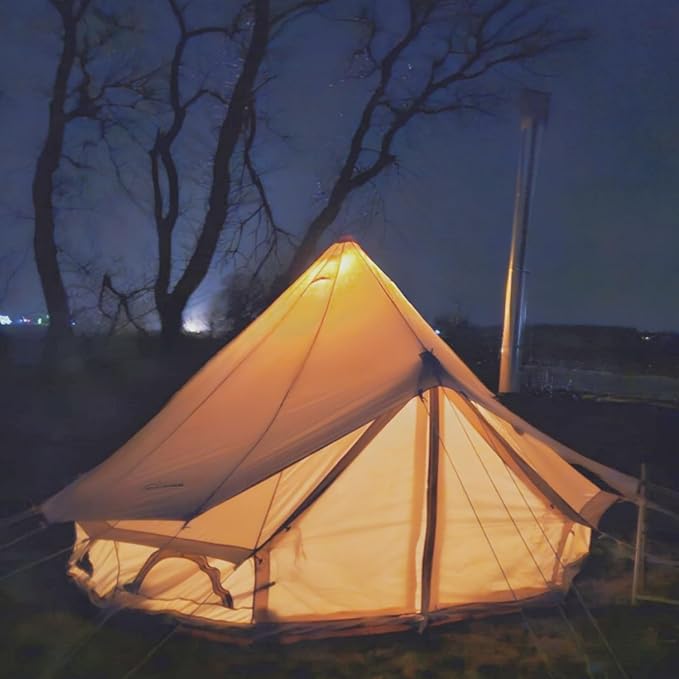 • IDEAL FOR WHO: Suitable for who want to use stove and tent with rain fly together, how have many glamping tents but do not have too much time to maintain them; Set up the bell tent outdoors for always or long time; The weather in camping site is rainy often; Worry about tent leaking.
