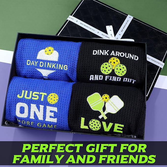 • the Ultimate Essential for Dink Lovers: the package includes 4 dinky ball towels, 2 each in elegant black and vibrant blue colors; These are necessary dink ball accessories for lovers of the game, doubling as functional sports towels for daily use and thoughtful gifts for other enthusiasts