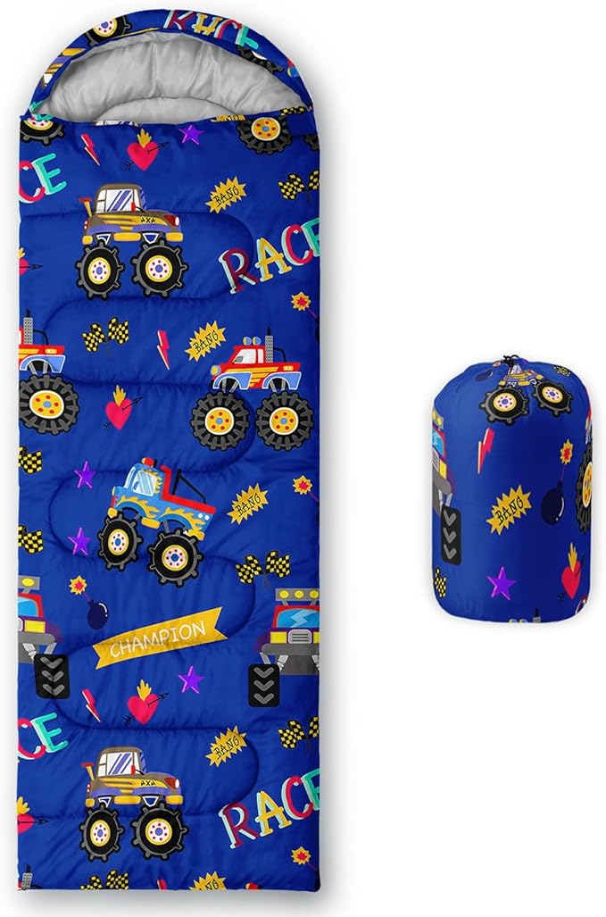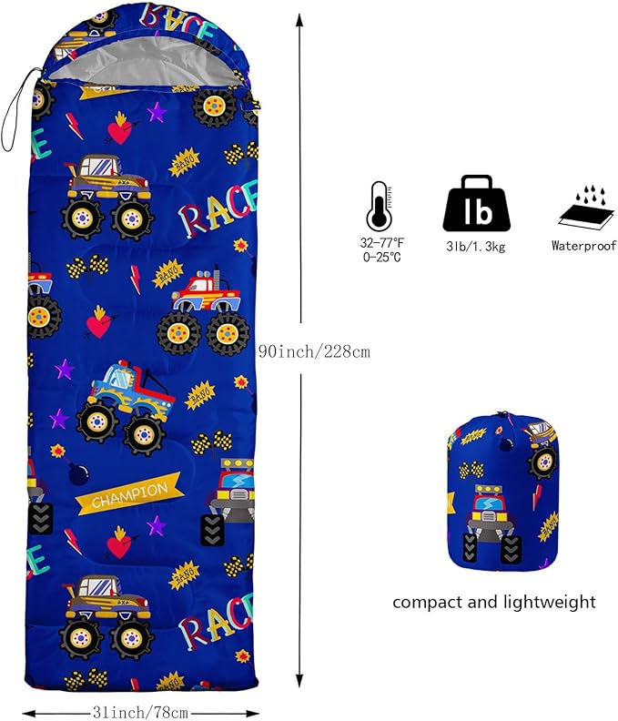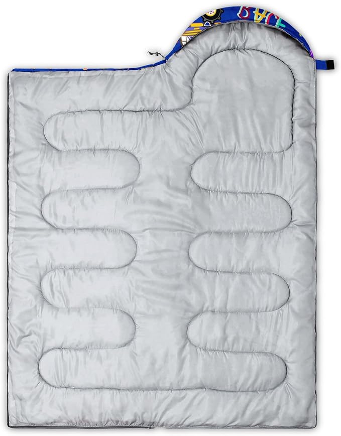 • SUITABLE:The sleeping bag can be used for 3 Seasons.SIZE:90.5"L x 31.5"W Suggenal extreme temperature: 41 ℉ -77 ℉.Applicable in a variety of scenarios,such as Travel camping pajamas party,It's very suitable for you to travel with your children.Half-circle hood with adjustable drawstring,which can keep you warm and prevent your humidity