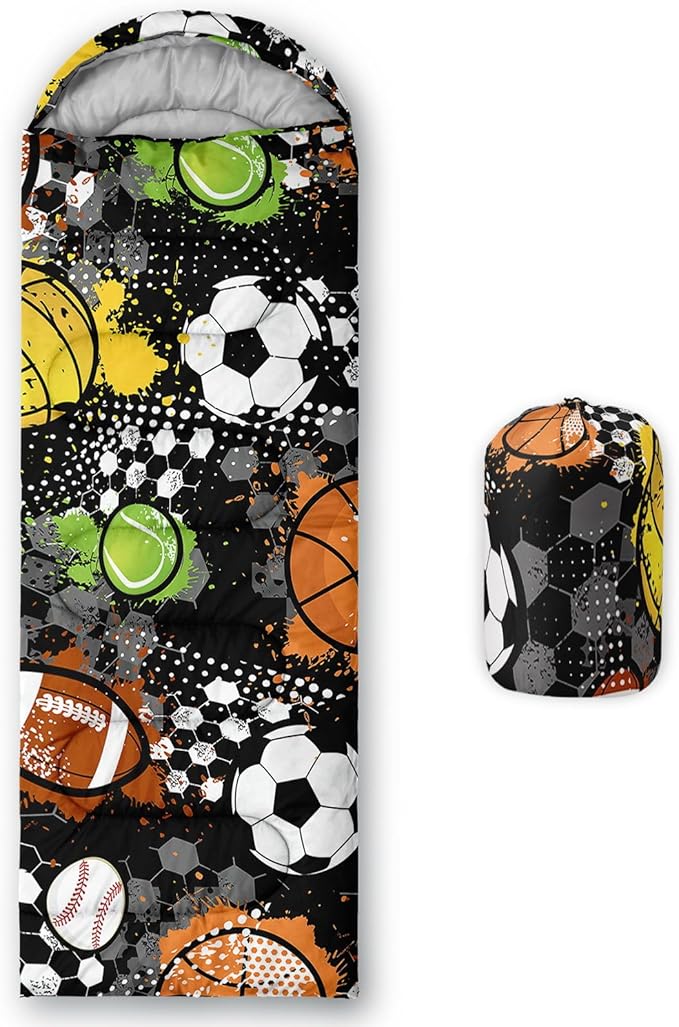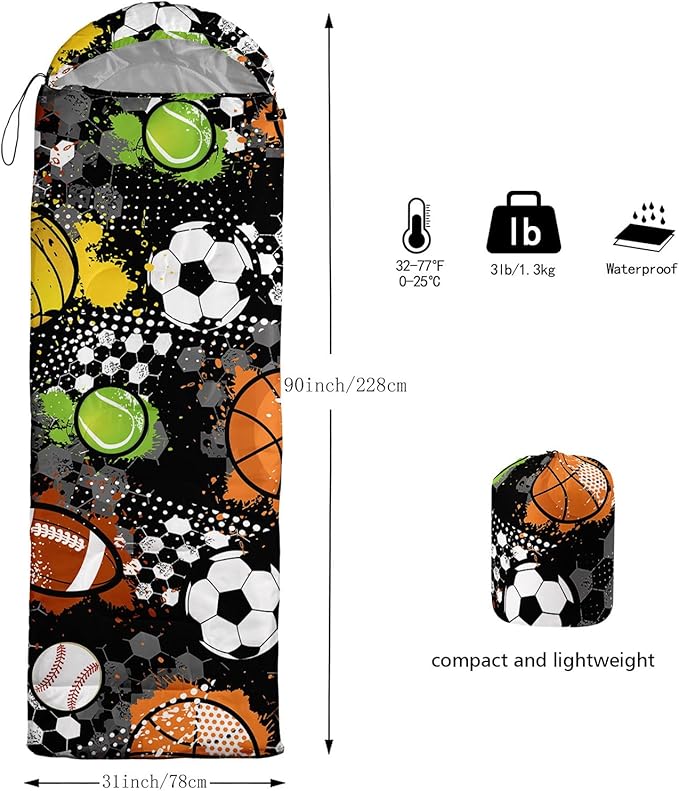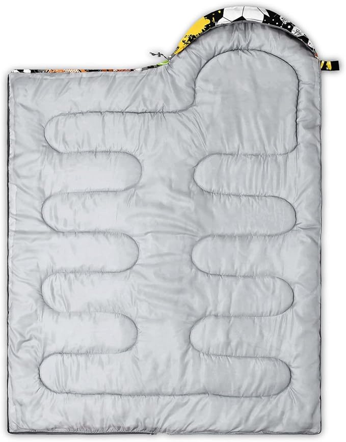 • SUITABLE:The sleeping bag can be used for 3 Seasons.SIZE:90.5"L x 31.5"W Suggenal extreme temperature: 41 ℉ -77 ℉.Applicable in a variety of scenarios,such as Travel camping pajamas party,It's very suitable for you to travel with your children.Half-circle hood with adjustable drawstring,which can keep you warm and prevent your humidity