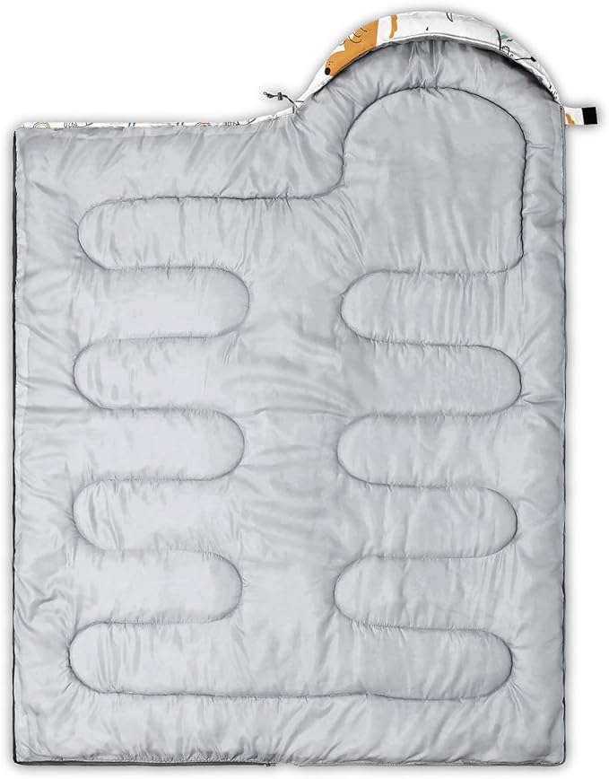 • SUITABLE:The sleeping bag can be used for 3 Seasons.SIZE:90.5"L x 31.5"W Suggenal extreme temperature: 41 ℉ -77 ℉.Applicable in a variety of scenarios,such as Travel camping pajamas party,It's very suitable for you to travel with your children.Half-circle hood with adjustable drawstring,which can keep you warm and prevent your humidity