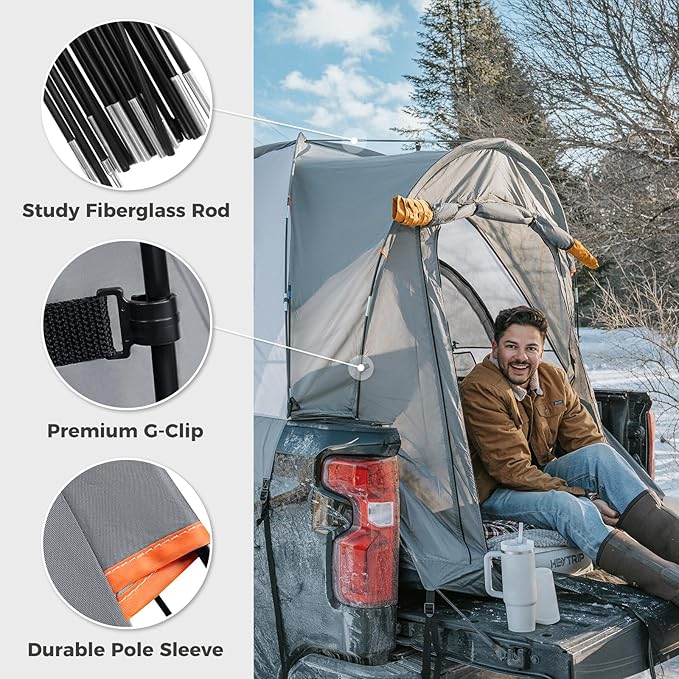 • Suitable For Pickup Truck:Transform your 5.0–6.8 ft pickup truck bed into a comfortable campsite with the HEYTRIP truck bed tent! This roomy pickup truck tent is perfect for camping and providing a cozy sleeping experience off the ground for two adults.