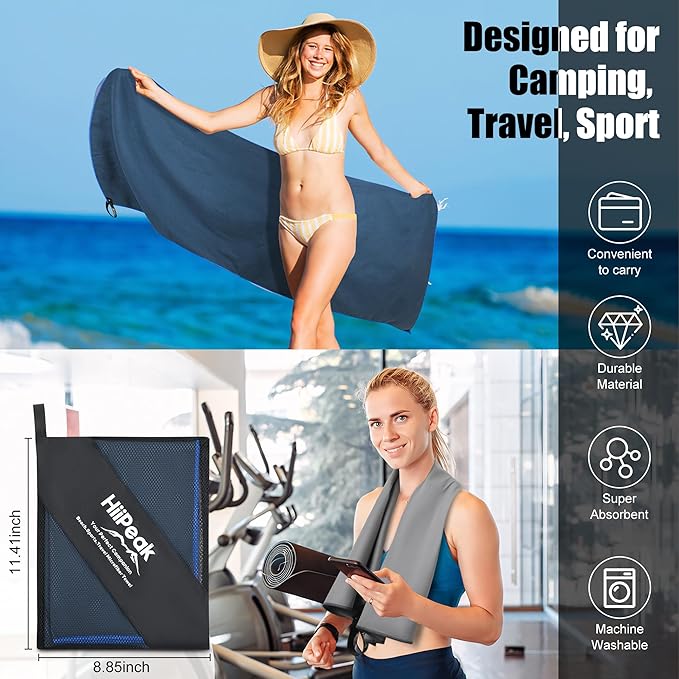 • SUPERIOR ABSORPTION & QUICK DRYING: Hiipeak's microfiber towels stand out from the rest. They're ultra-soft and soak up moisture in a flash. Our travel beach towels are crafted with cutting-edge technology that combines superior absorption with rapid drying capabilities. These towels dry three to six times faster than traditional towels and can hold several times their weight in water.