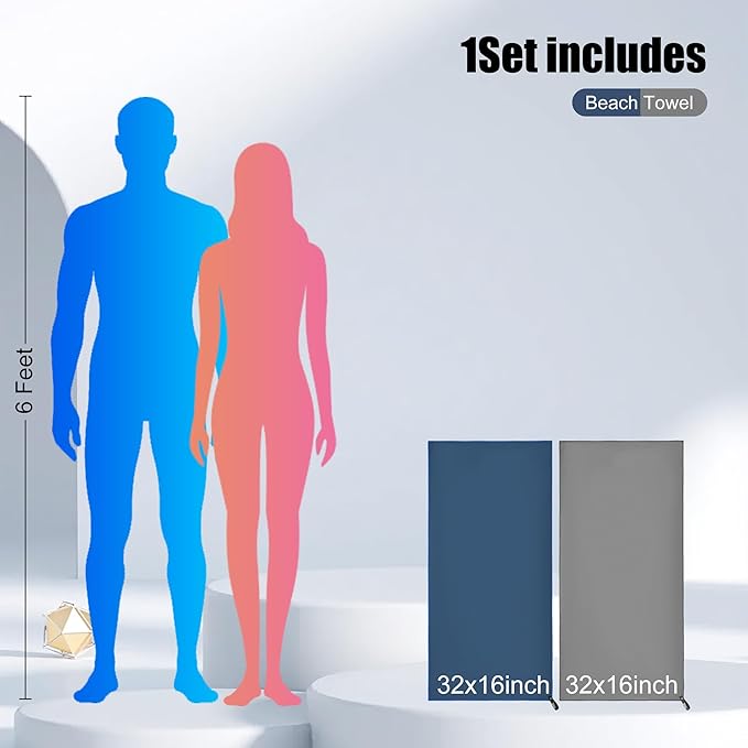 • ULTRA-LIGHT & CONVENIENT: Each set boasts two ultra-lightweight travel towels, measuring 63"x32" and 32"x16". Use them as swim towels, gym towels, or small beach towels on your next vacation.