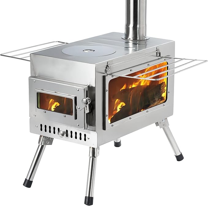Outdoor Camping Stove Camp Tent Stove, Portable Wood Burning Stove with Chimney Pipe for Tent, Shelter, Camping Heating and Cooking (Pipe Diameter: 2.95")