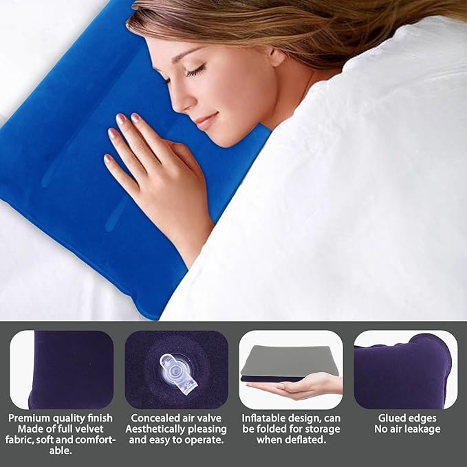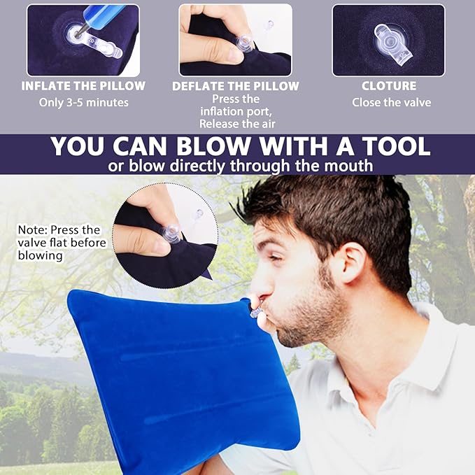 • 🏞️ 🔄 𝐈𝐍𝐅𝐋𝐀𝐓𝐀𝐁𝐋𝐄 𝐃𝐄𝐒𝐈𝐆𝐍 𝐅𝐎𝐑 𝐂𝐎𝐌𝐏𝐀𝐂𝐓 𝐒𝐓𝐎𝐑𝐀𝐆𝐄: 🏞️ 🔄 The inflatable camping pillows for backpacking inflatable design allows for a quick and easy setup, you can blow by mouth or inflate with a pump for 3-5 minutes and you'll have a soft, comfortable pillow! When not in use, the pillow can be deflated for easy storage and convenient for traveling and camping.