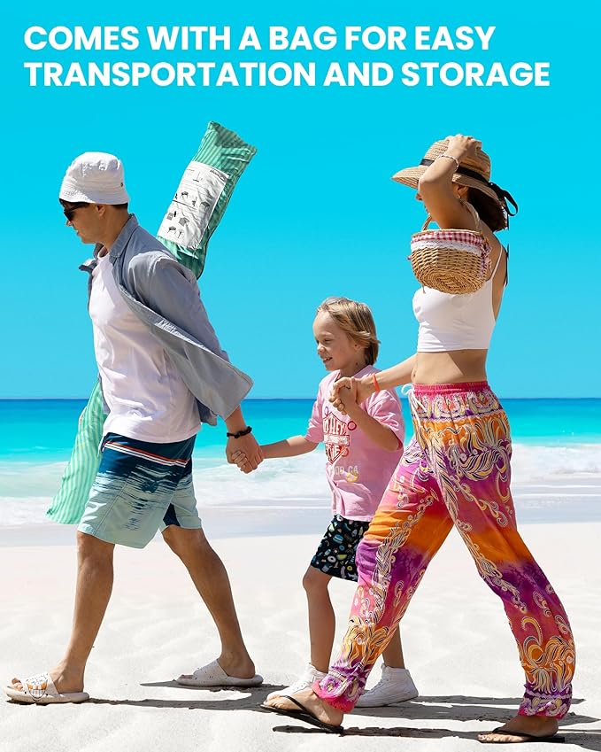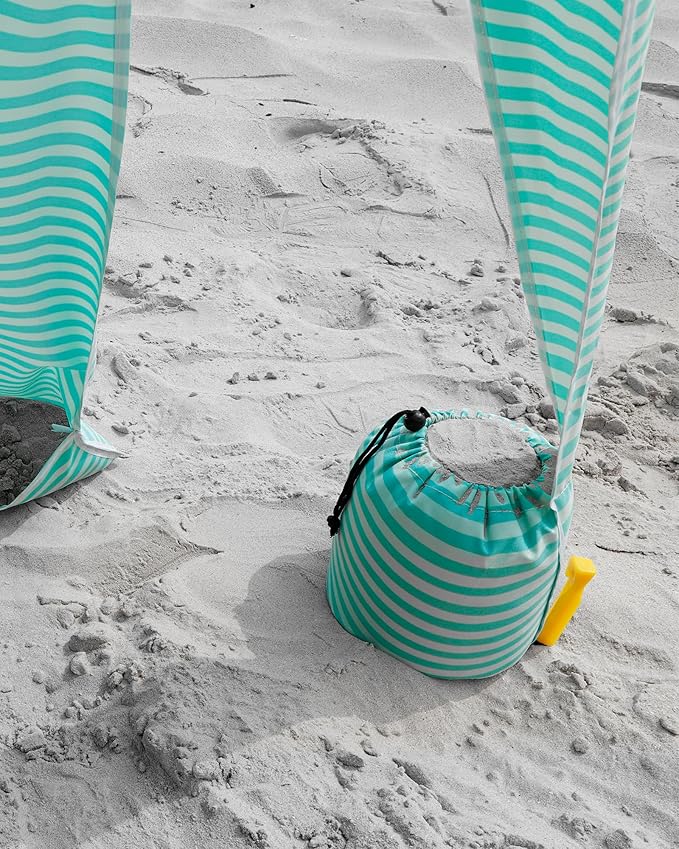 • Stable Beach Cabana with Sandbags: Sturdy and durable fiberglass structure holds the roof. Comes with 4 stakes and built-in sandbags at each corner to keep the beach umbrella firmly anchored on sand, grass, or other surfaces.