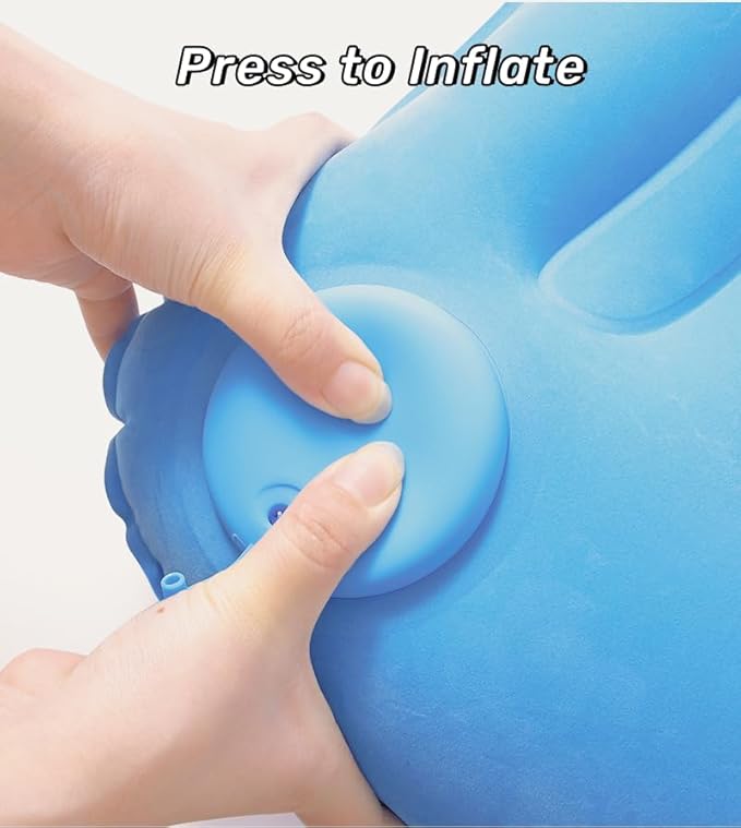 2 Pack Inflatable Pillow Camping, Inflatable Air Pillow for Neck and Lumbar Support, Press-to-Inflate Design, Travel Pillows for Camping, Hiking, and Backpacking - Blue