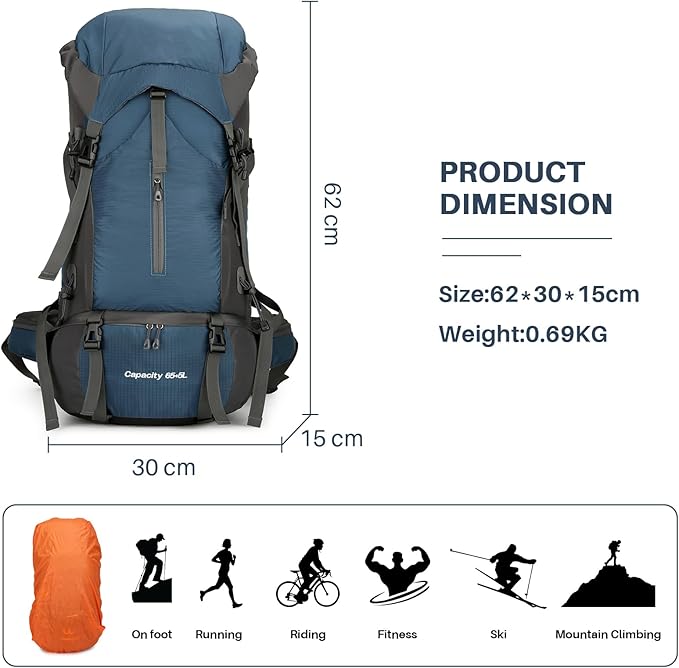• 🎒Waterproof & Deployable Rain Cover: Each hiking backpack men love comes with a deployable rain cover, effortlessly ensuring your essentials stay dry during unexpected showers. No more worries about your belongings being ruined