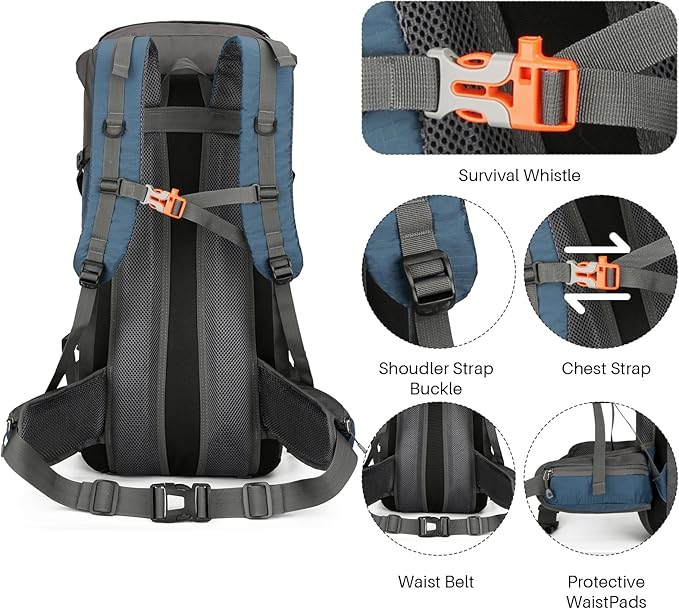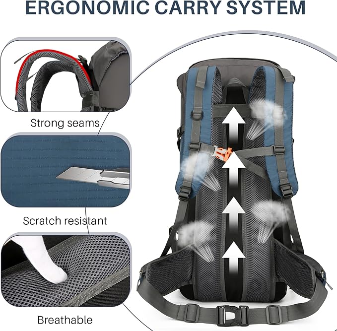 • 🎒Convenience & Ergonomic: Long trips are no longer a pain with our backpack's ergonomic design that evenly distributes weight, breathable mesh for ventilation, and adjustable chest and waist straps. Our camping backpack has enough compartments for everything you need, keeping your items safe