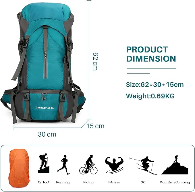 • 🎒Spacious Smart Design: Are you tired of fumbling around for your gear? Our hiking backpack has you covered with a large main compartment for all your essentials and smartly designed pockets for easy organization and access. Plus, a bottom section to keep things tidy