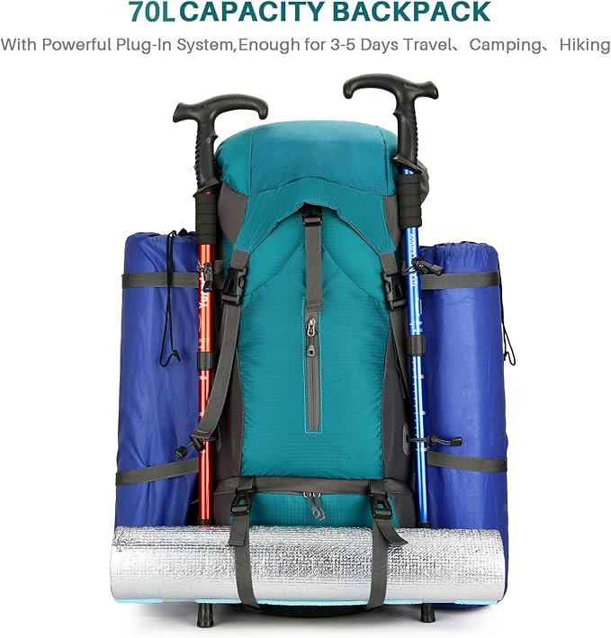• 🎒High Material & Lightweight: Unleash your inner adventurer with the OKYUK 70L backpacking backpack. Skillfully crafted from high-grade, tear-resistant 900D Oxford materials, ensuring a perfect balance between durability and lightweight, our camping backpack is your go-to for all outdoor activities