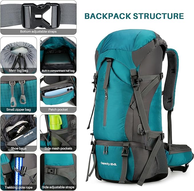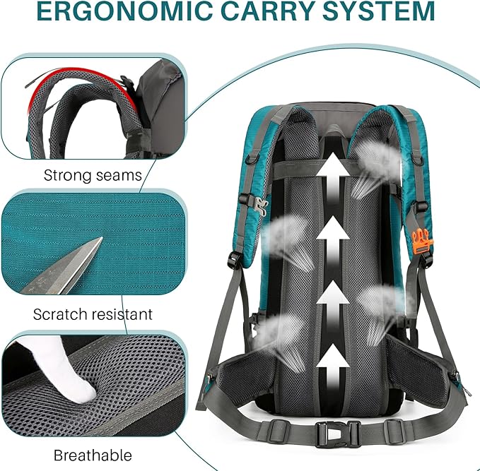 • 🎒Convenience & Ergonomic: Long trips are no longer a pain with our backpack's ergonomic design that evenly distributes weight, breathable mesh for ventilation, and adjustable chest and waist straps. Our camping backpack has enough compartments for everything you need, keeping your items safe