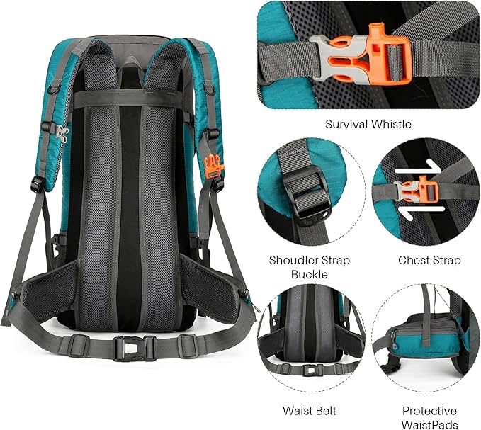 • 🎒Waterproof & Deployable Rain Cover: Each hiking backpack men love comes with a deployable rain cover, effortlessly ensuring your essentials stay dry during unexpected showers. No more worries about your belongings being ruined