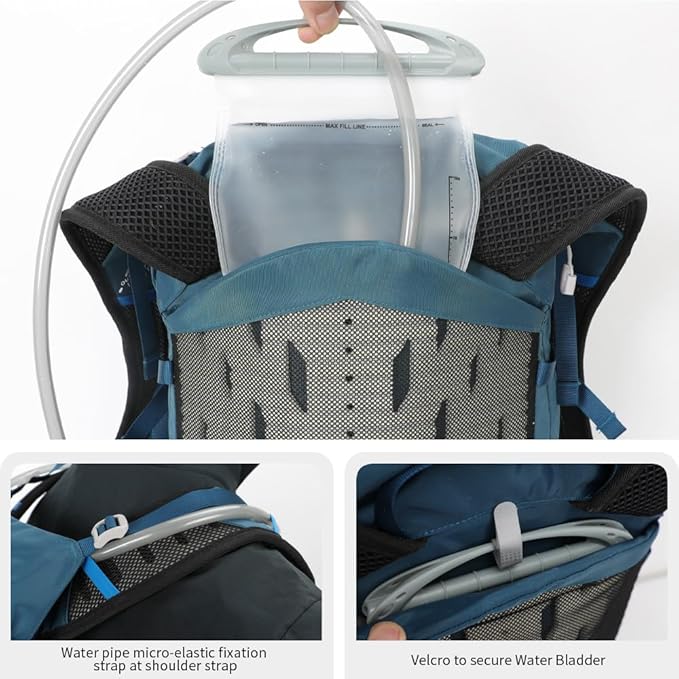 • 【3L Waterproof Bladder】IX INOXTO hiking hydration backpack comes with a 3-liter hydrated bladder. An on-off valve and a cap make the double leak-proof. Large opening, quick filling of water and ice, easy cleaning, water pipe (40 "long, 0.4" diameter) provides healthy flow, easy drinking, water temperature range of -20 to +50 ° C.