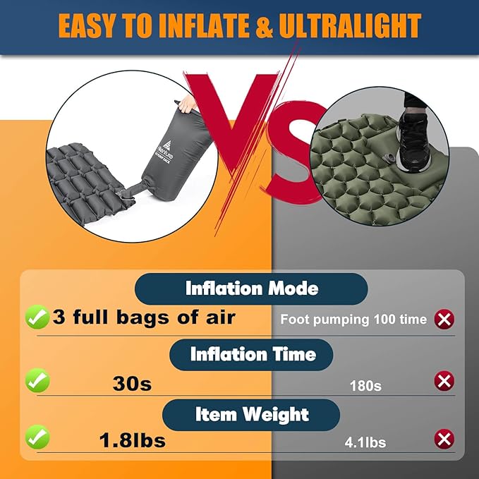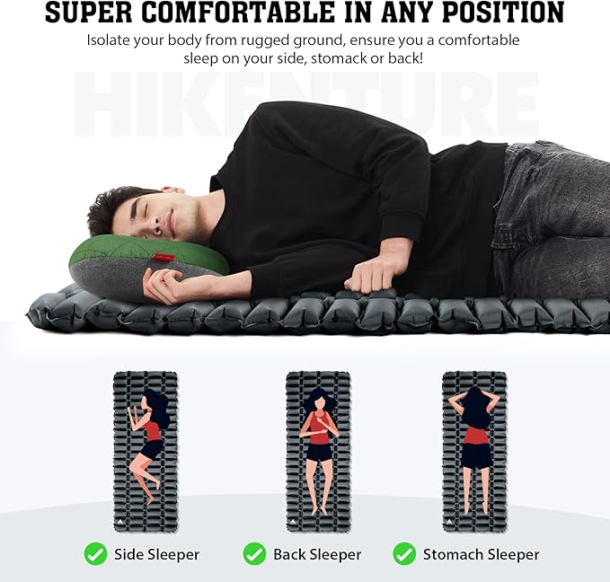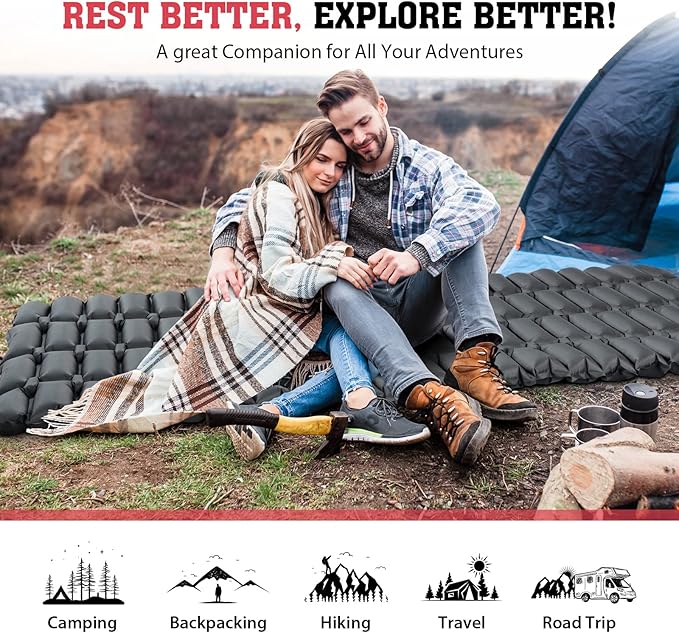 • BRING BED-LIKE COMFORT TO THE OUTDOORS: Camping with your loved ones, family, or friends is an excellent way to unwind. Start your unforgettable journey with the Hikenture double sleeping pad, measuring 72" in length and 50" in width to comfortably fit two people, offering 2.8" of thick sleep support during your outdoor adventures.