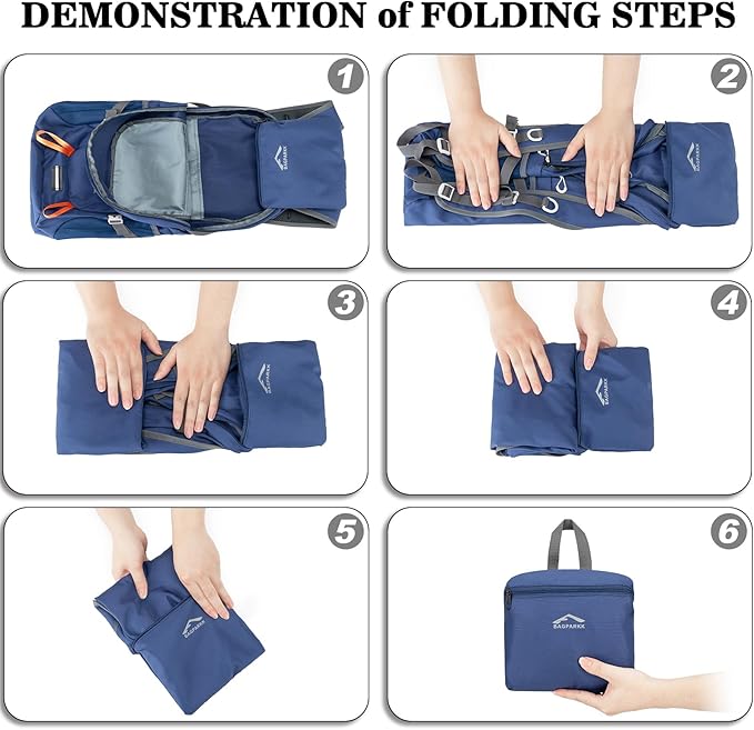 • Foldable & Lightweight:The Foldable backpack weighs only 0.88 pounds and can be easily folded into a small one for storage. The folded size is only 7 * 6* 2inch, which is not bigger than a book and takes very small space.To avoid overweight charge, simply unfold from your checked bags and use it as a carry on for your excess baggage.