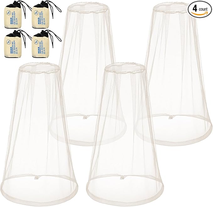 HESTYA 4 Pack Mosquito Net Mesh for Head Face Neck Fly Netting Hood from Bugs Gnats No See Net with Carry Bags for Outdoor
