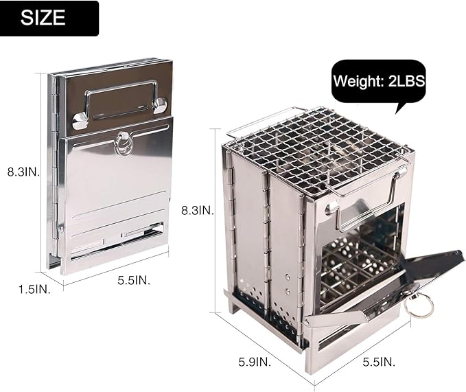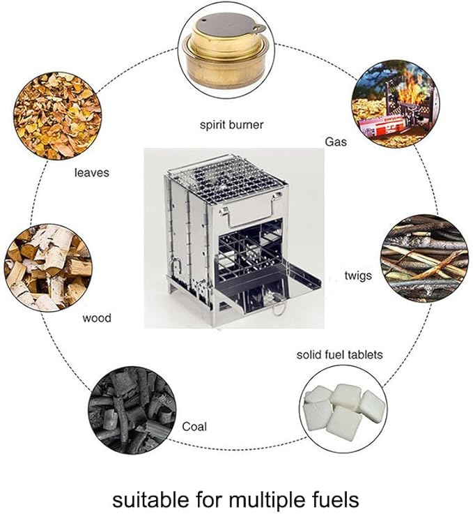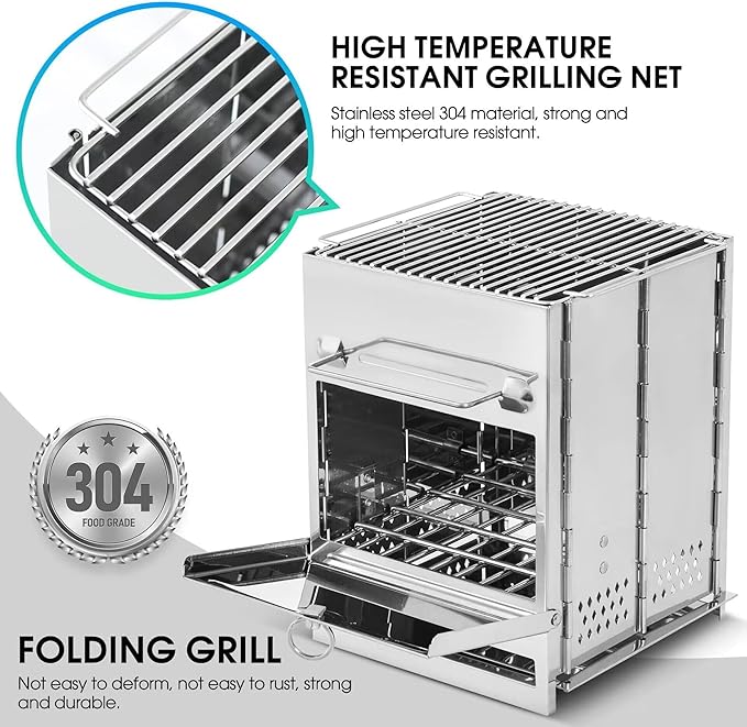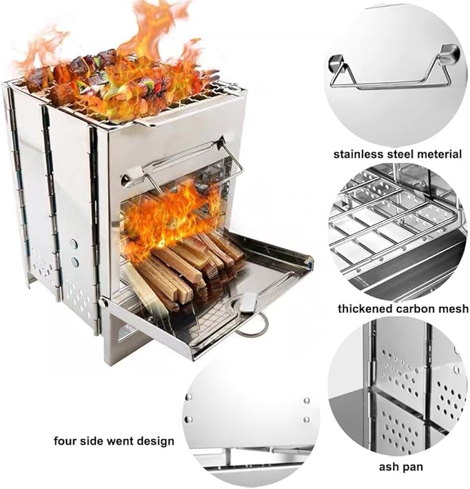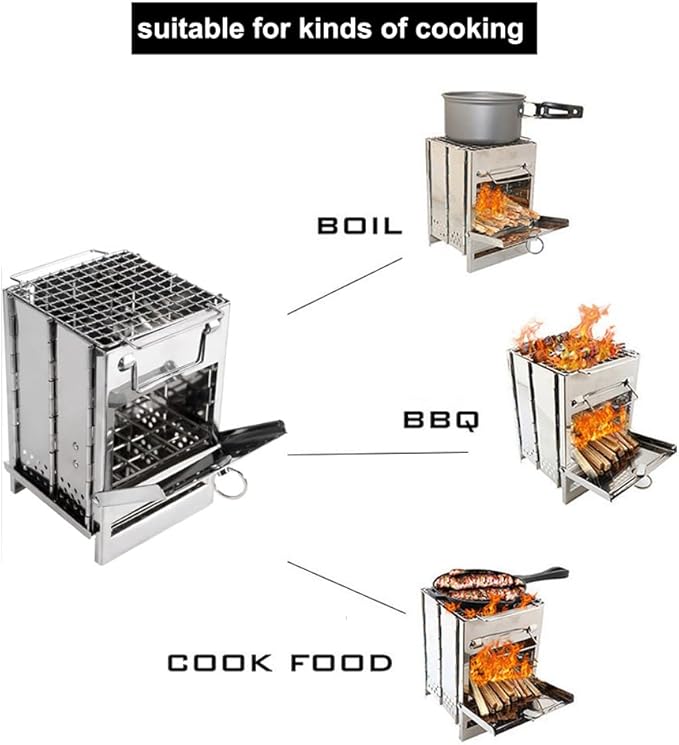• Contains a rocket stove, a ash pan, a grill, a handbag, no need to disassemble, ready to use. Don't worry about not being able to use it after deformation.