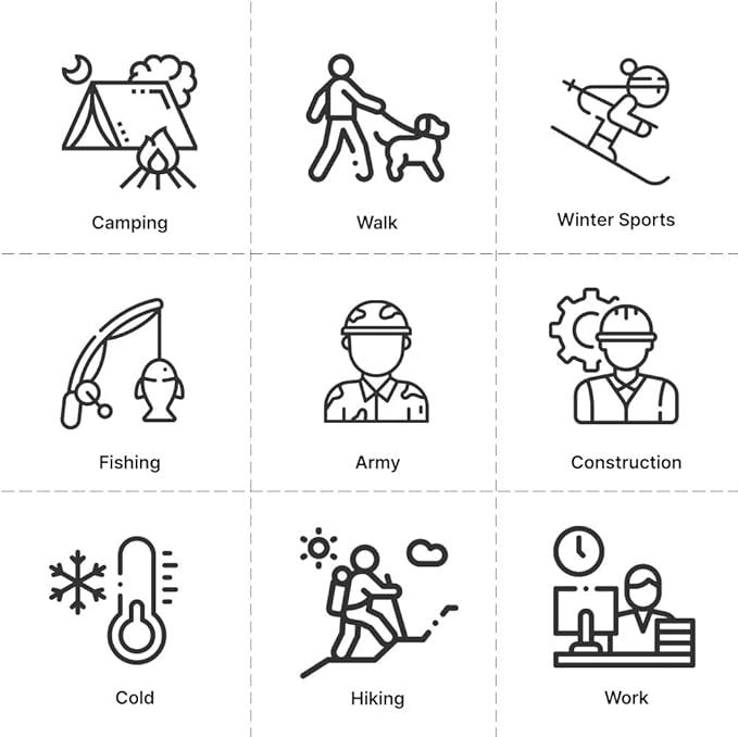 • Where to use - Convenient and suitable for working in the yard, jogging or walking with pets, outdoor sporting events, hunting and fishing, camping and hiking, dating, maintaining body temperature, mountaineering, tracking, skiing, psoriasis workers, etc.