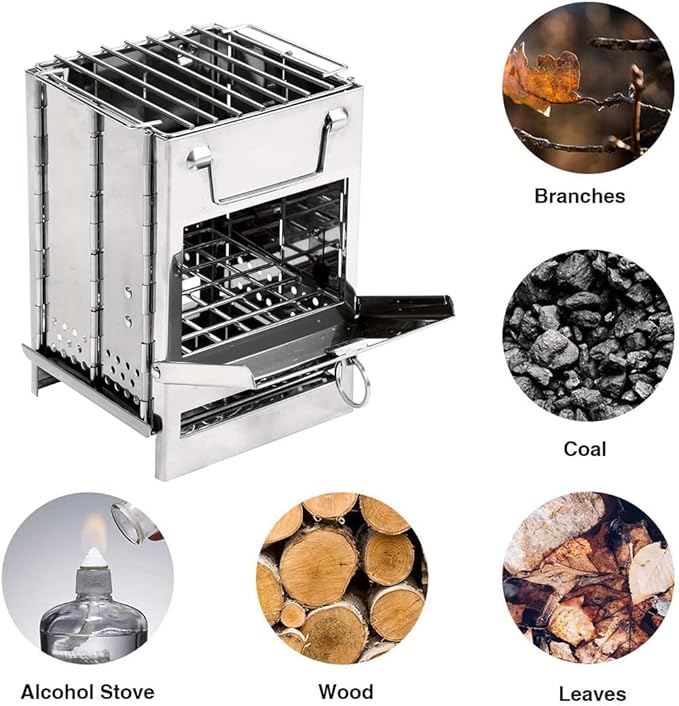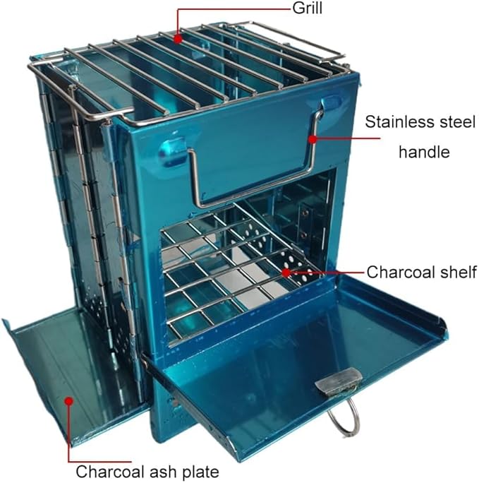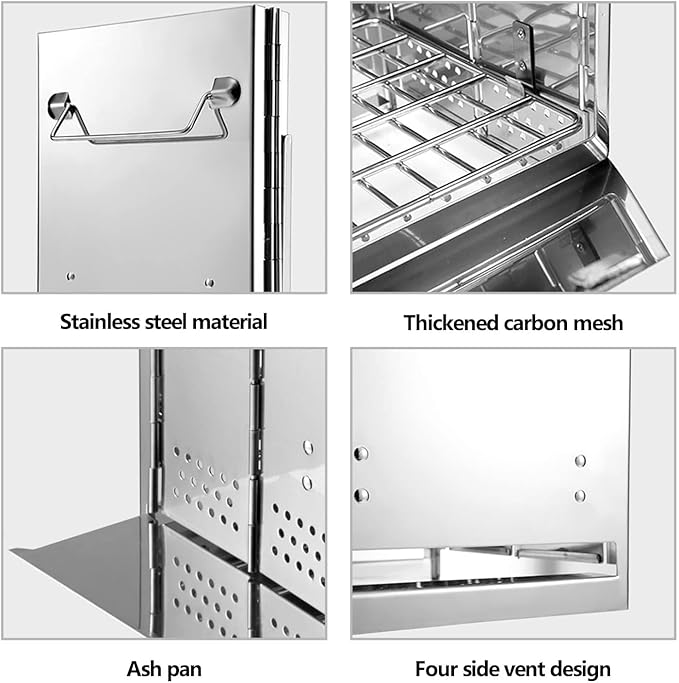 • Contains a rocket stove, a ash pan, a grill, a handbag, no need to disassemble, ready to use. Don't worry about not being able to use it after deformation.