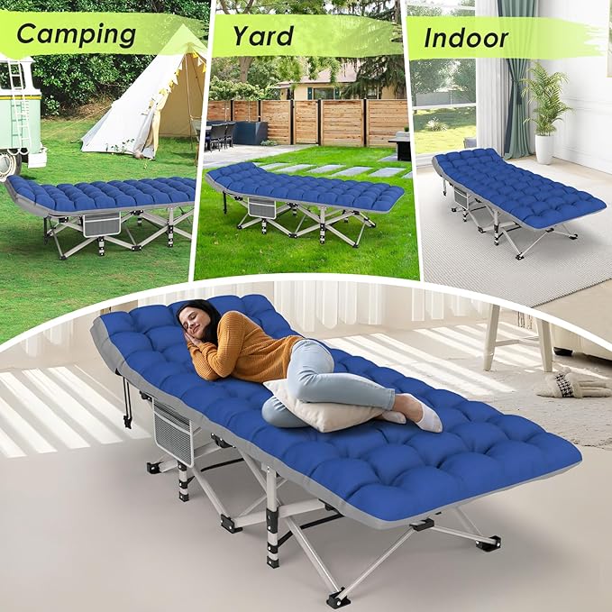 • 【Wide Range of Applications】 This camp cot has a large built-in side pocket to store your water bottle, phone, glasses, keys, books, toys, and more. This is a great camping bed for adults and kids. Perfect for camping, road trips, beach, backyard, office naps, and more