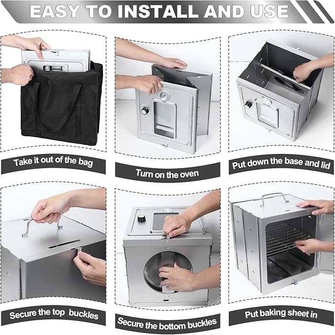 • Easy to Carry and Store: this outdoor camping oven features a foldable design that is easy to use, can be easily assembled in minutes without any help, and is lightweight for portability; After use, fold it and put it in a handbag for storage